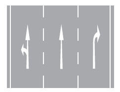 38. Kavşaklara yaklaşırken yol üzerine çizilmiş şekildeki oklar sürücülere neyi bildirir?